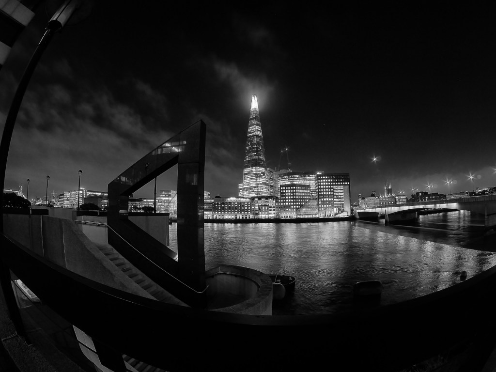 Another favourite spot is just east of the northern ramp of London Bridge. There is a point where there is a staircase to an elevated point to photograph the Shard south, across the river. There is the added bonus of a triangular feature. Not sure what it is but it makes for a nice foreground interest.