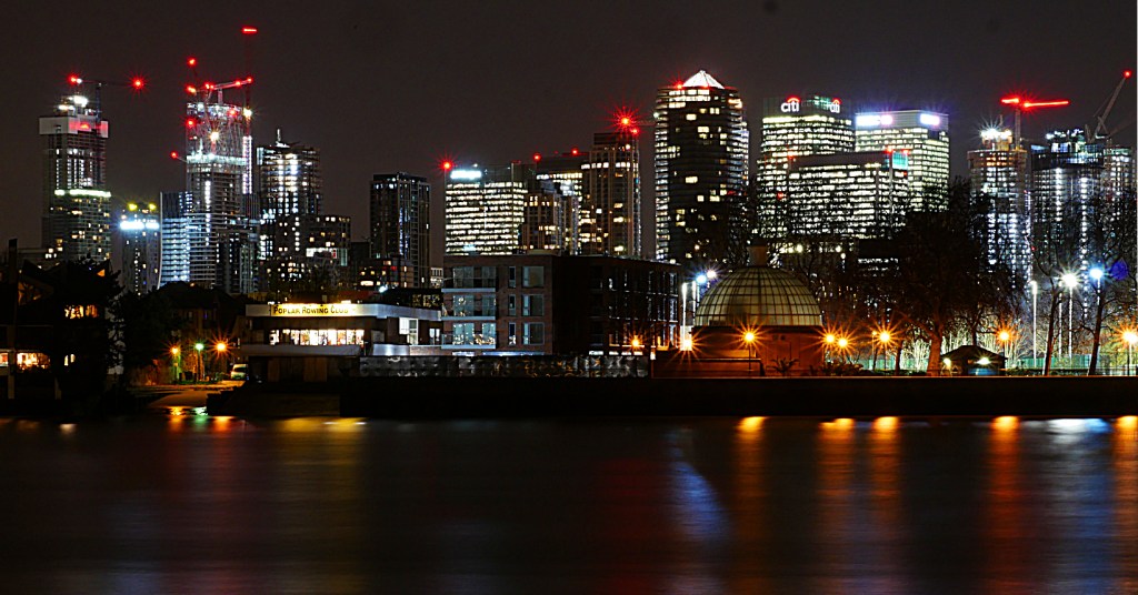 One of the trips was with some fellow members of the local camera club. I had researched the location for some night photography but what I had seen was a bridge of Royal Victoria Docks. What I hadn’t appreciated though was the height of this bridge which one had to get up to with a lift. It makes sense when you think about it as it’s designed to allow tall ships to move under. It was ideal though to set up our tripods for some photography of Canary Wharf with the sun setting.