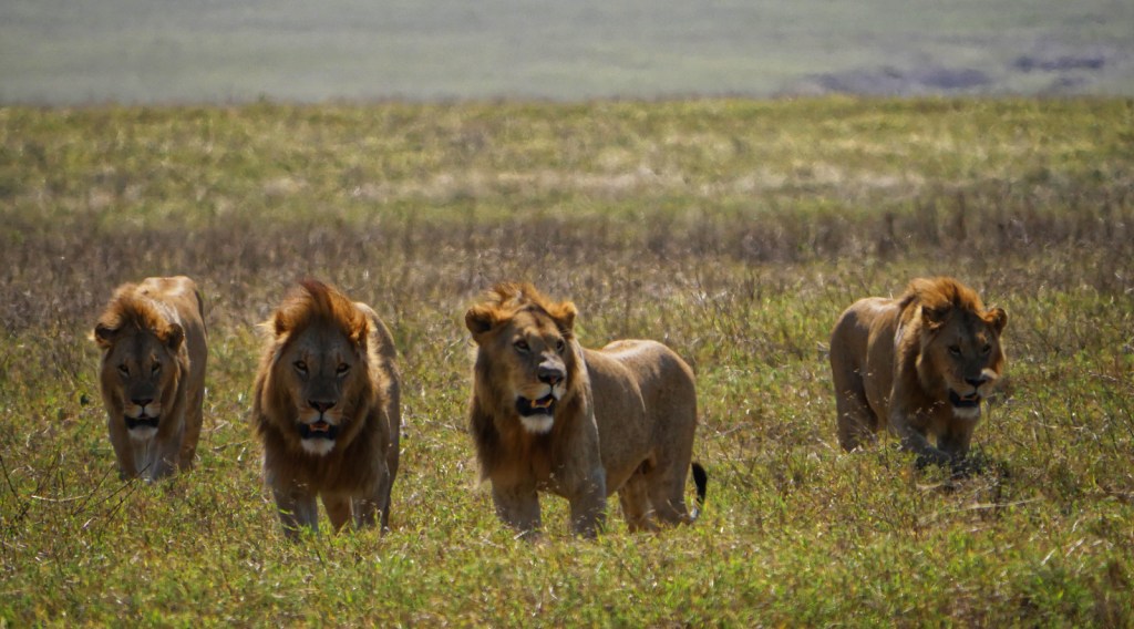 Blue-Breasted Bee-Eater. Four of a group of five lions walking toward us in the Ngorongoro Crater. Black Kite. Black Kite. Grant’s Gazelle. Zebra and Warthog. Zebra having a dust bath! Crowned Crane. A zebra crossing! Water Buck. Hippos.Elephants on the Ngorongoro Crater. Crowned Cranes in flight. Wildebeest.Wildebeest