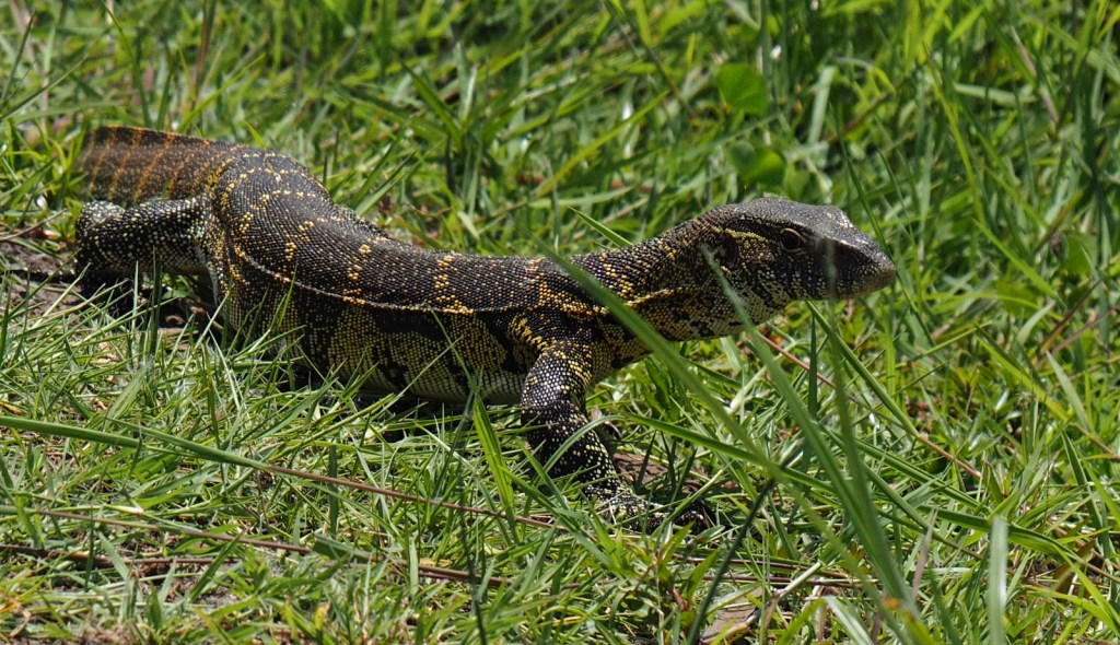 A lion up a tree in Lake Manyara National Park.We had to pull over to let the elephants through!Baboons in Manyara.A Monitor Lizard.A Goliath Heron.An Egret with a Black Heron in front of it. The Black Heron is also known as the Umbrella Bird due to it’s feeding habit. It walks into an area of shallow water, opens it’s wings to form an umbrella shape. Fish move into the shade formed by the birds wings and become prey for the bird.