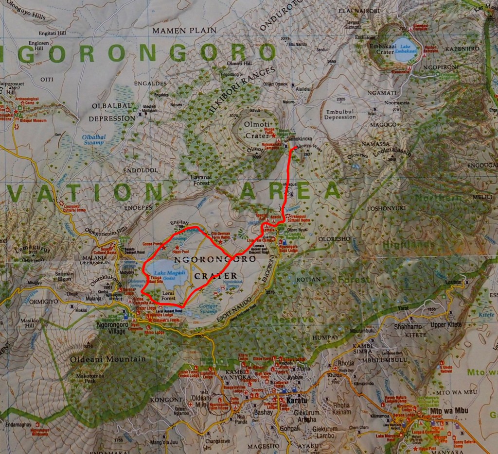 Leaving the village we then traced our route back and descended into the crater itself. Ngorongoro is the worlds largest, inactive, intact and unfilled volcanic caldera. It is 2000 feet deep and covers a 100 square miles.