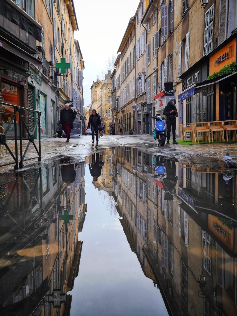 So, here we are at day 3 of our trip to Aix en Provence. Today proves to be rather wet. A good opportunity for us photographers however to get some photographs with reflections.