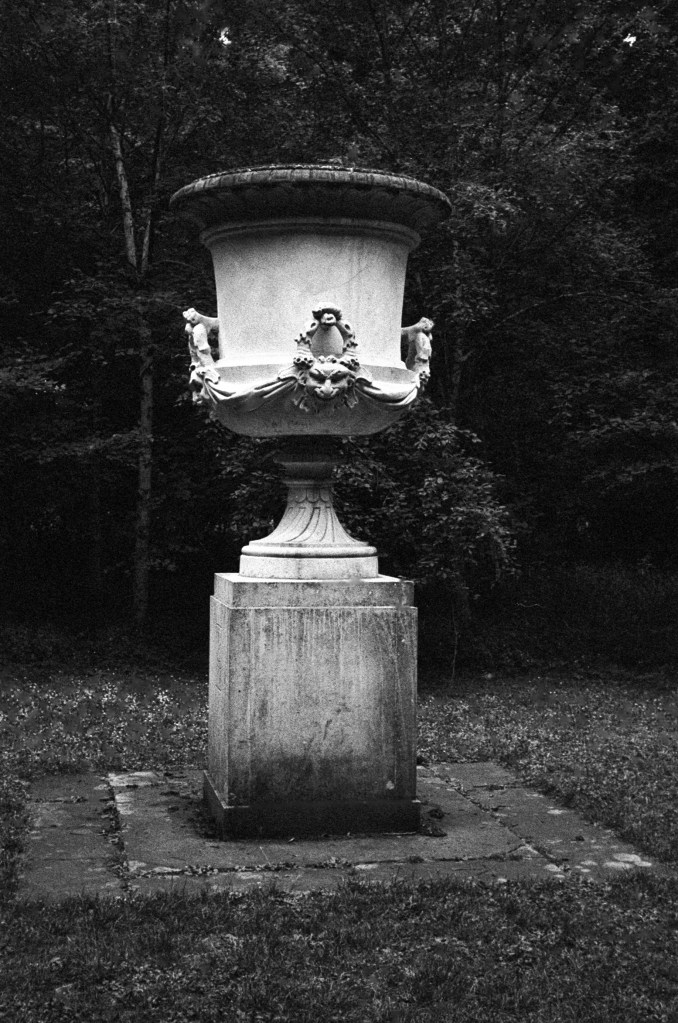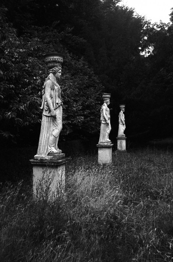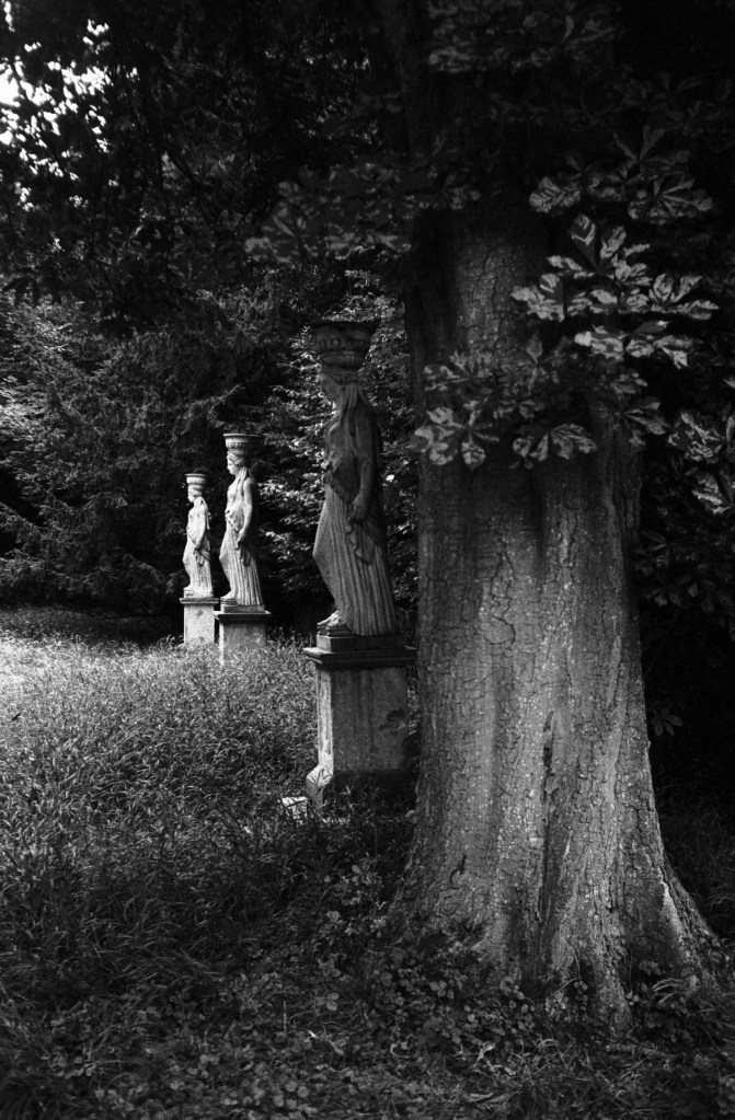 I recently was able to visit the National Trust property of Anglesey Abbey. Having just received the camera through the post I thought I’d load up with a roll of Fomapan 400 black and white film and try it out. It was an overcast day so not too much contrast but the white statuary in the grounds set against a dark background of foliage proved to be ideal for a test and I’m quite pleased with the results. The camera was a joy to use and handled very well. Manual focusing was very easy with the 400 ASA film providing small enough apertures to get some depth of field.